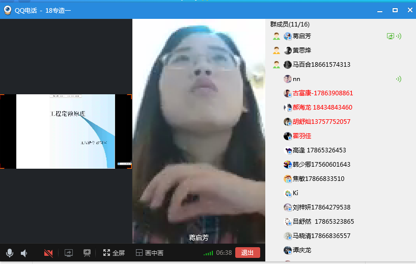 直播课堂中,蒋老师开启的摄像头,分享屏幕,把整个PPT能清晰显示到学生手机或者电脑上,且全屏显示,与现场面授教学时PPT的显示一样清楚。同时她上课要求同学们课前全部闭麦,只打开老师的麦,全场只有老师在说话,老师也会不定时提问问题,只有需要回答问题的同学在回答问题时开麦,不需要全部同学实名认证,还能保证上课纪律,还可以跟学生互动,提高上课积极性,防止他们打开语音跑去睡觉或者做其他的事情,保证学习质量。
