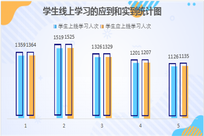 2、本周详细的学生线上学习的应到和实到统计图如下: