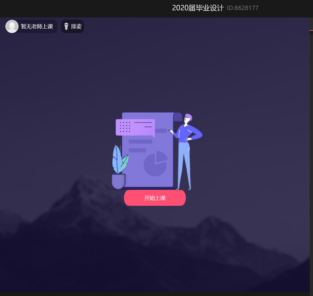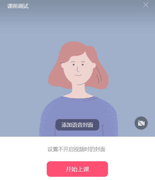 (3)点击上课后出现以下窗口,此时还没有上课,可以点击视频按钮选择是否开启。(当然关掉后后面要用也可以再开,开启后直播过程中学生能看到你)