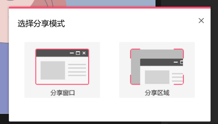 (4)点击屏幕下方的分享屏幕按钮,选择分享模式(建议选择第二个选项),然后点击右下角的实时分享,就可以把你电脑桌面的内容让学生们看到啦!