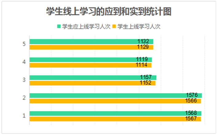 2、本周详细的学生线上学习的应到和实到统计图如下: