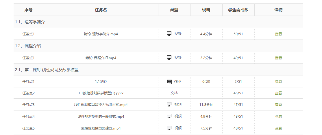 《运筹学》课程由于前期已经将该课程的作业和习题等资源上传使用,本学期只需要补充视频资源。