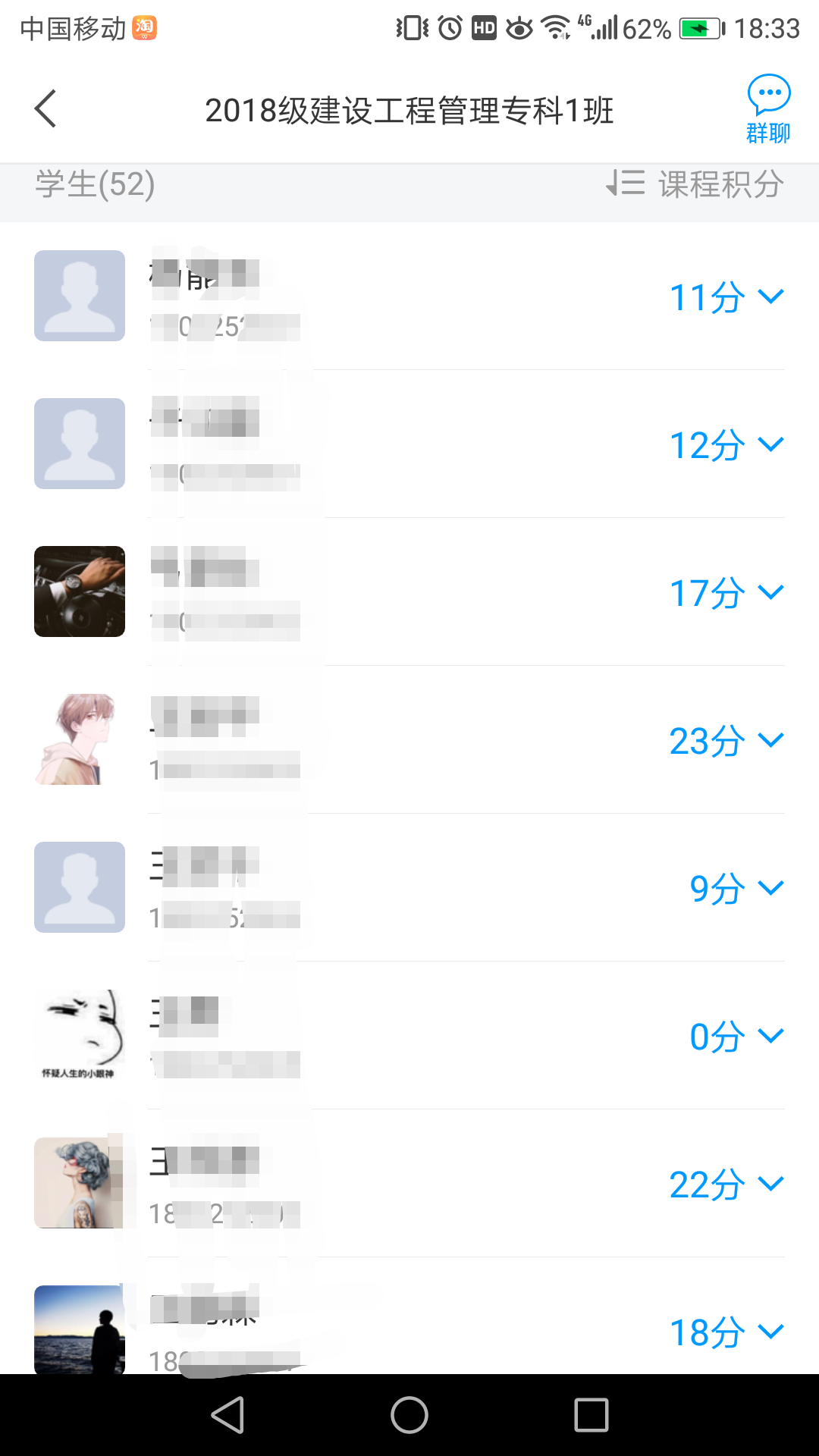 (2)采用群聊进行答疑、练习和互动,进行课堂加分,提高学生积极性。