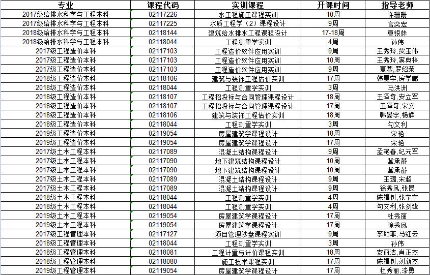 2020-2021-1学期实训安排