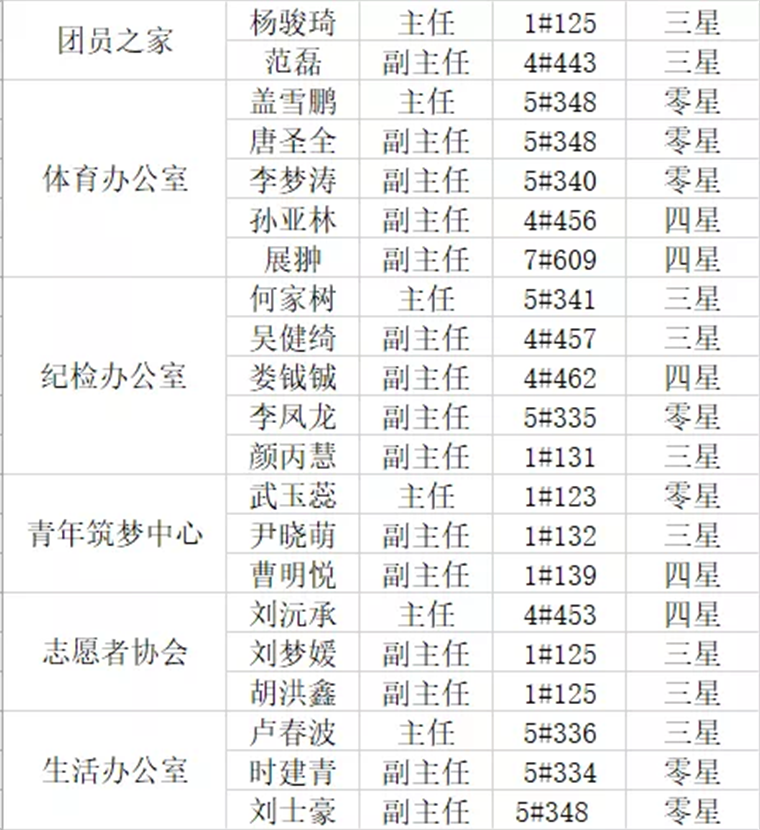 寝室是大学生活和学习的主要场所,寝室文明程度既体现了学生的精神面貌和文明水准,也体现了学生的思想境界,为推进校园文化建设,培养学生良好的文明行为习惯,提升宿舍文化品位,塑造“团结向上、健康文明、卫生整洁、和谐愉快”的宿舍环境,学生干部更应该以身作则,下面让我们来看一下他们宿舍星级吧。