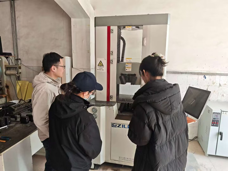 随后,调研团实地参观了材料检测实验室、结构力学实验室及门窗三性检测中心。在材料检测区,技术负责人现场演示了钢筋力学性能检测全流程;在结构实验室,双方就建筑结构健康监测技术应用展开深入探讨。参观过程中,教师们详细了解了行业最新检测设备及技术标准,并就实验室建设、实践教学等方面与企业技术人员进行了现场交流。