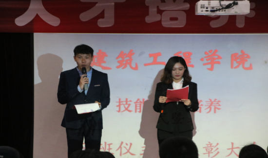 2017年4月12日下午四点,建筑工程学院在知新楼一楼东配举行了建筑工程学院“技能人才培养开班仪式暨表彰大会”,参加此次大会的有建筑工程学院教务副院长尹院长、院长助理孙院长及专业指导老师以及受表彰的同学。