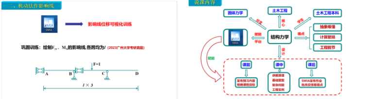 王贺老师在《结构力学》的教学中,针对学科抽象难懂、计算繁琐、工程脱节的痛点,结合本科学生力学基础薄弱的学情,创新性地以 SMIA(结构力学智能教学交互平台)为载体设计教学环节。课前通过平台发布预习内容明确学习目标;课中讲解原理时,基础题型直接讲练,复杂结构求解则借助平台拆分问题,以闯关模式引导探究,还能将抽象变形可视化,同时引入工程实例增进认知;课后利用平台发布作业,其自主批改功能可及时反馈结果并生成易错点知识图谱,助力学生针对性查缺补漏,显著提升了学习效率。