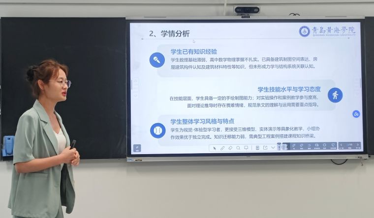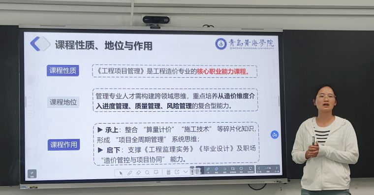 梁春焕老师与张玲老师分别对《工程项目管理》和《建筑工程项目管理》课程进行了剖析。她们详细阐述了课程在培养学生项目管理全流程知识体系、综合管理能力及职业素养方面的重要作用,并介绍了如何通过翻转课堂、小组协作等方式提升学生的实践能力,以及对雨课堂等新型智慧化教学工具的应用。
