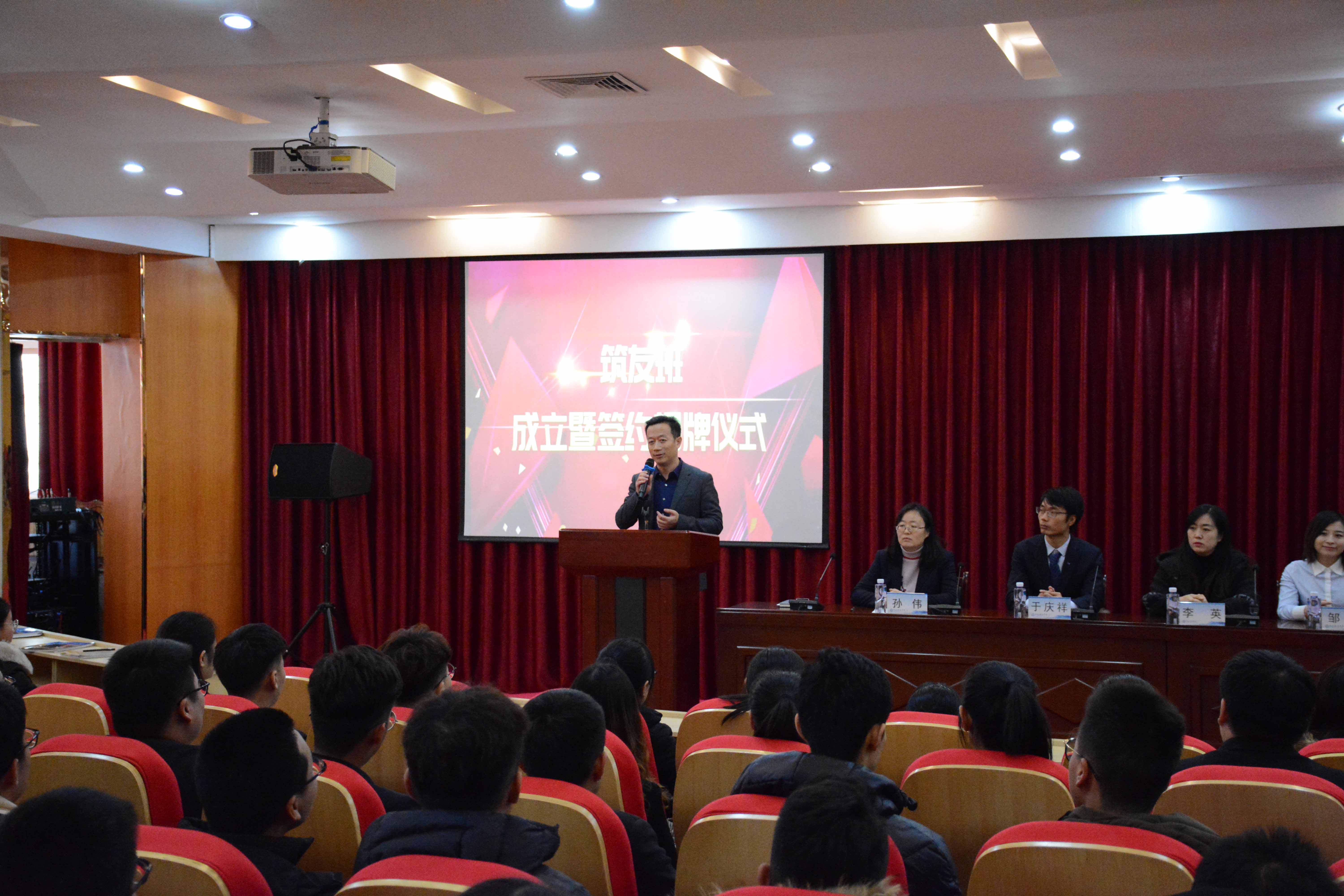 为践行高等教育内涵式发展,深化产教融合,推进校企合作,实现学校与产业、企业、岗位对接,2018年12月29日上午10点,由中民筑友建设科技集团有限公司(以下简称“筑友集团”)与青岛黄海学院建筑工程学院(以下简称“建工学院”)共同举办的“筑友班”成立。