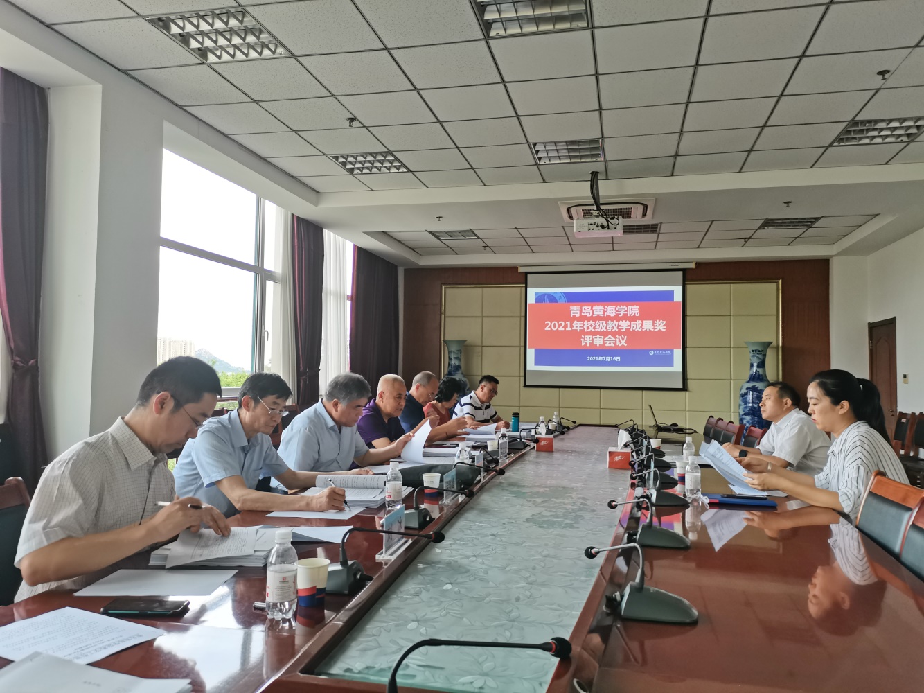 7月16日下午,学校在行政楼201会议室召开了2021年度校级教学成果奖评审会议,会议邀请了来自中国石油大学、山东科技大学、青岛理工大学、青岛职业技术学院等高校的7位历届省级教学成果奖获得者作为评审专家,对各学院推荐参评的24个项目进行了评审,会议由梁忠环副校长主持。