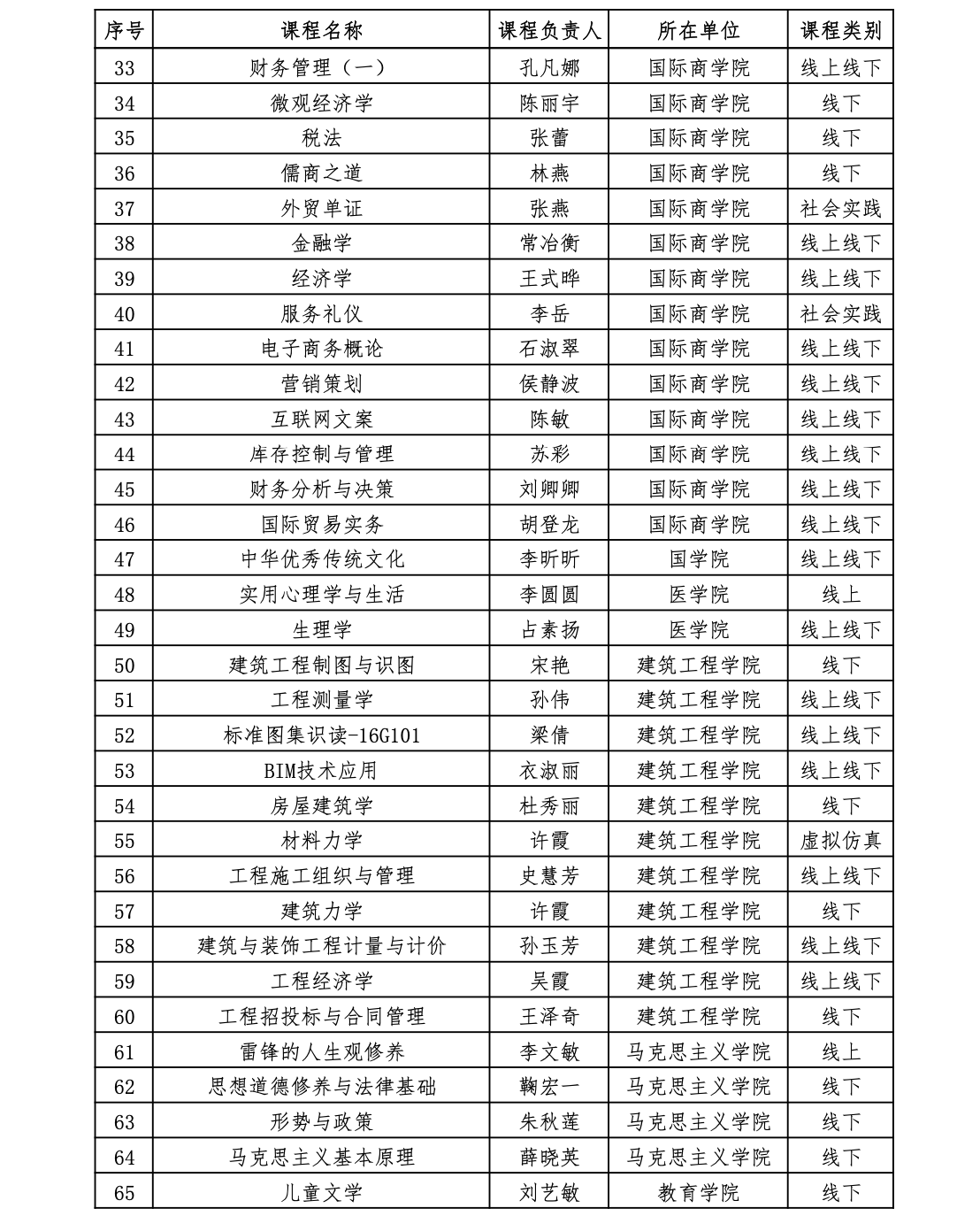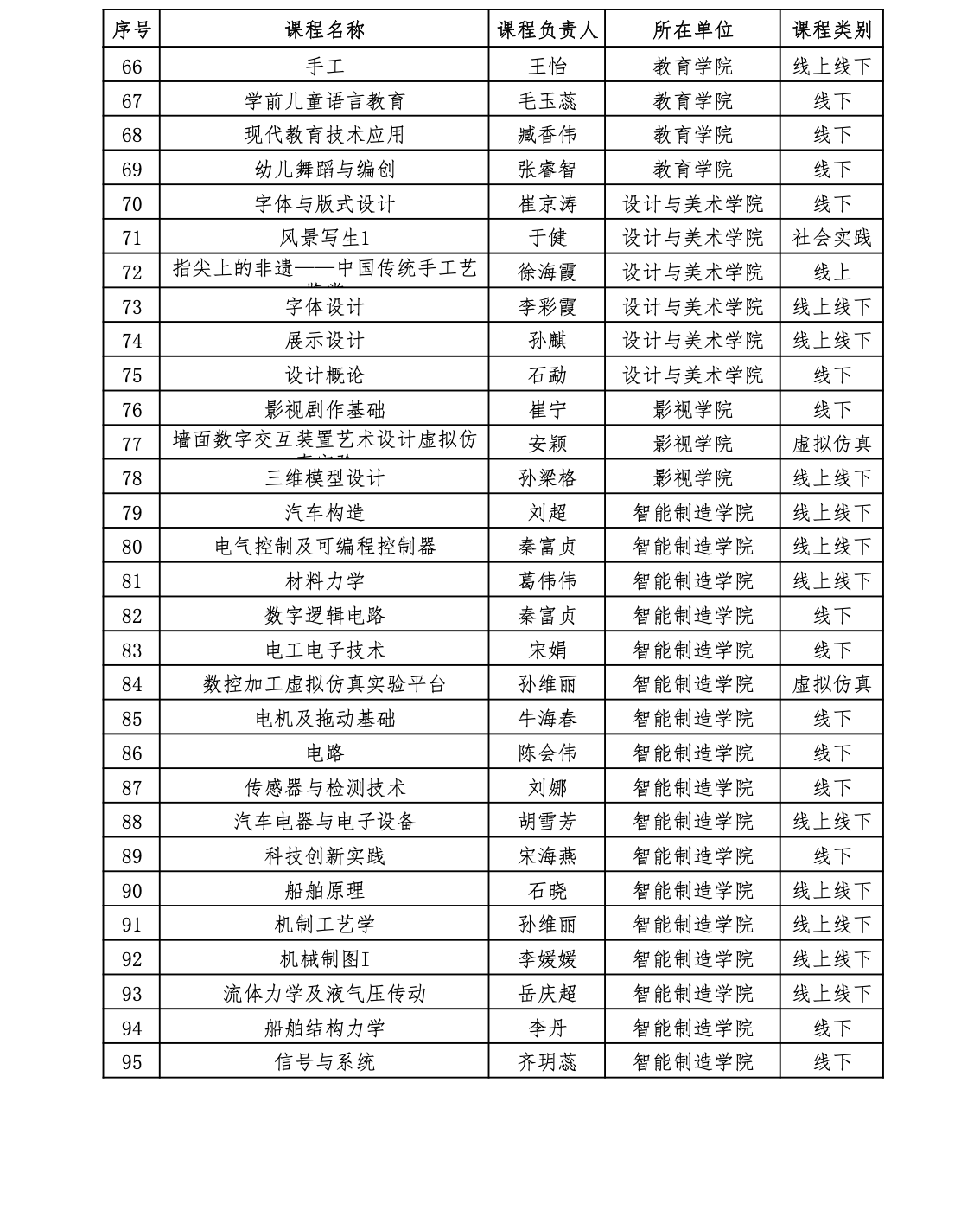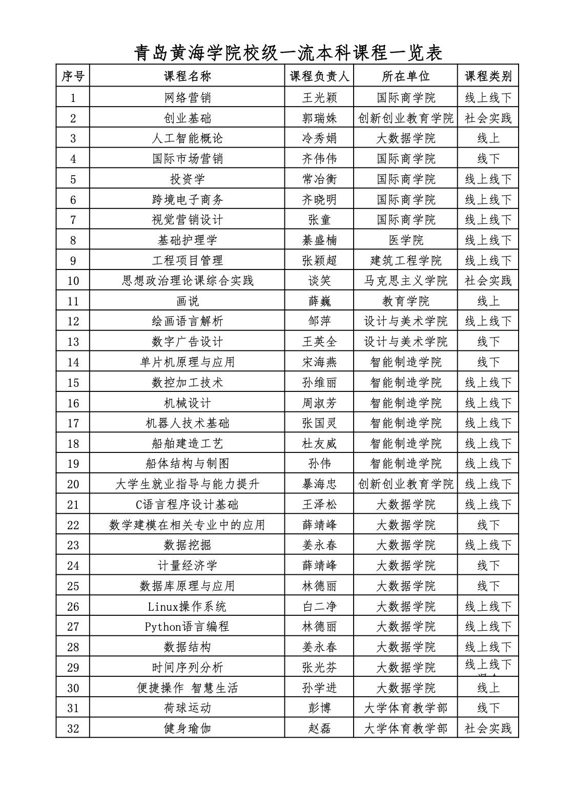 青岛黄海学院校级一流本科课程一览
