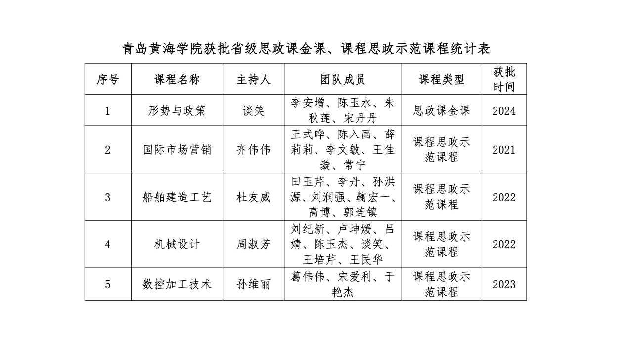 青岛黄海学院省级思政课金课、课程思政示范课程一览