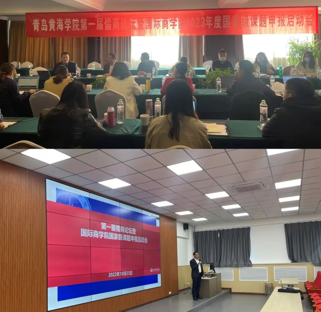 为进一步提高2023年国际商学院国家级课题立项申报质量,推进有组织的科研管理,国际商学院于10月23日以线下+线上的组合方式举办了“青岛黄海学院第一届儒商论坛暨国际商学院2023年度国家级课题申报启动会”。会议由国际商学院院长助理王瑞峰老师主持,国际商学院课题申报教师近50人参加了会议。