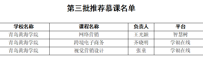 近日,教育部高等学校电子商务类专业教学指导委员会公布了第三批在线教学资源推荐名单。我校王光颖老师的网络营销、齐晓明老师的跨境电子商务以及张童老师的视觉营销设计三门慕课入选推荐在线教学资源推荐公示名单。