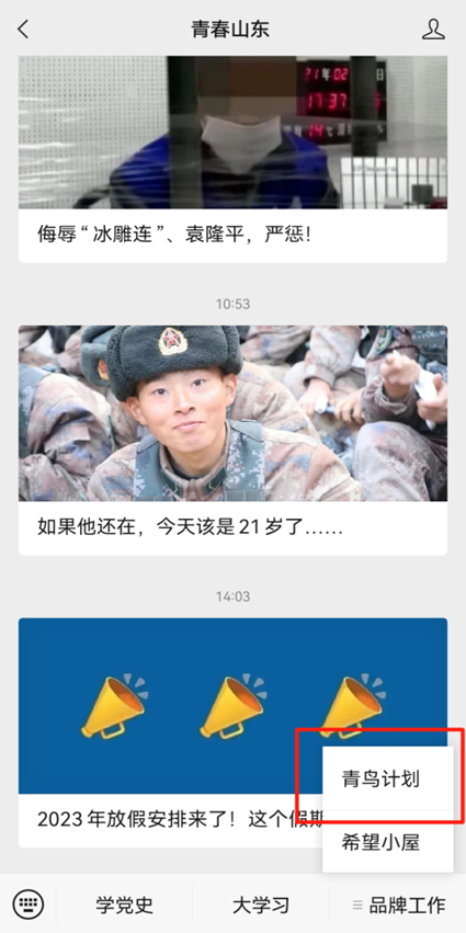 01微信搜索“青春山东”公众号或搜索“青鸟计划”小程序
