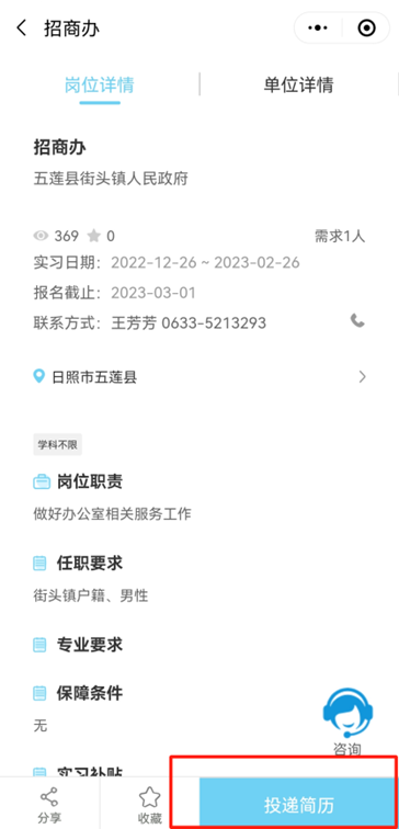 05点击“首页——实习岗位”寻找令你心动的岗位投递简历