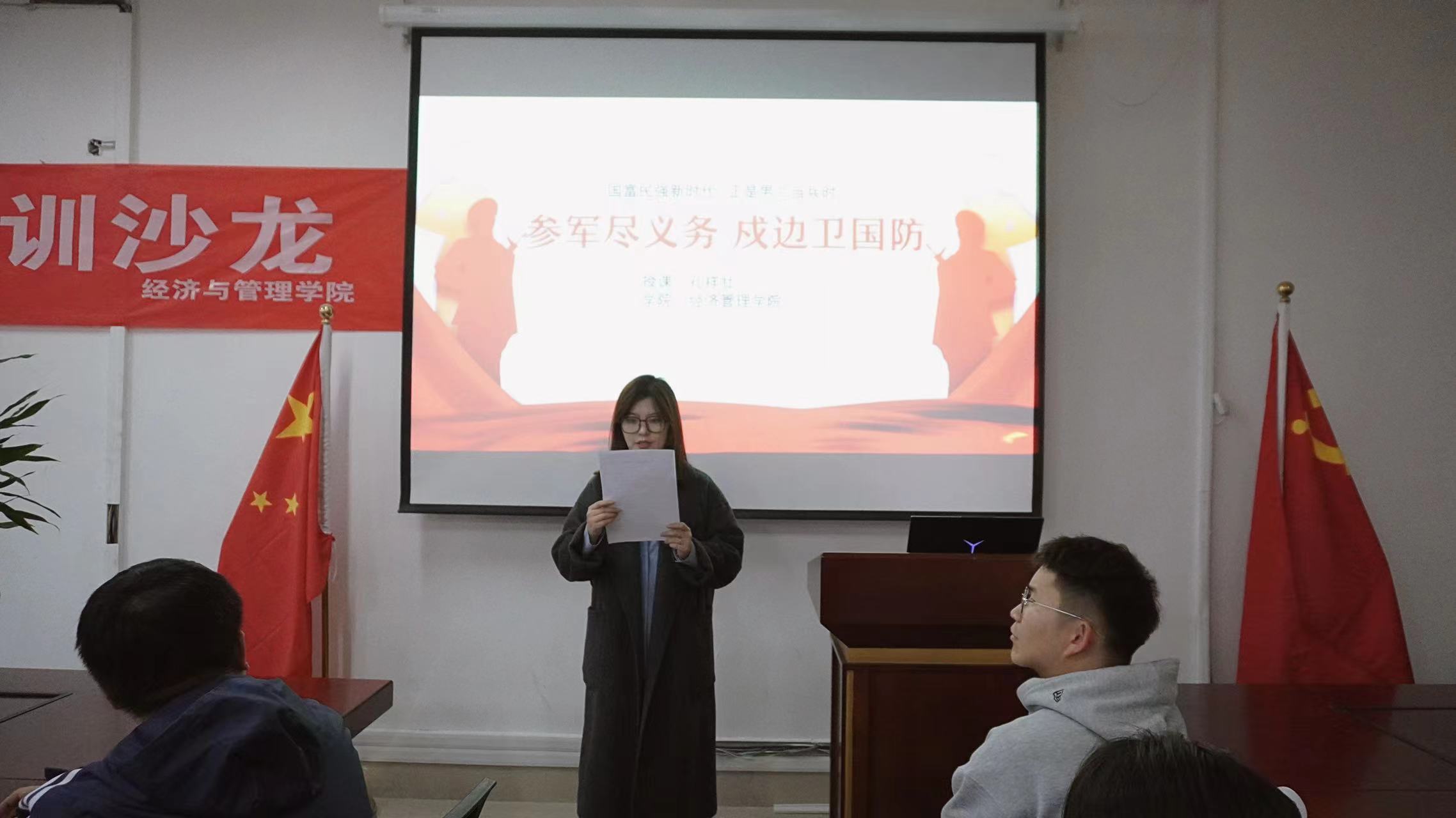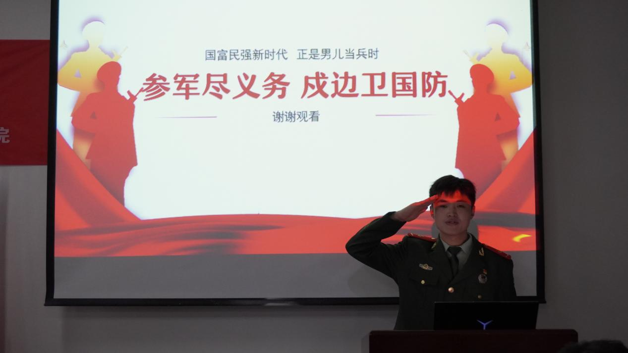 孔祥壮老师以参“军尽义务戍边卫国防”主题,从征兵入伍条件要求、国防意义、当兵的十大好处、应征入伍的基本流程、退役士兵的优惠政策、拒绝和逃避服兵役行为的处罚六个方面与现场辅导员做了详细交流。