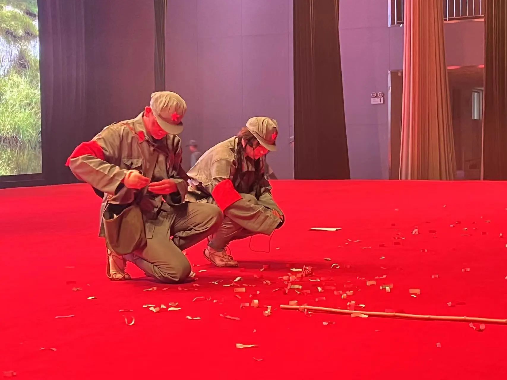 参演的同学们个个气宇轩昂,台词铿锵有力,将角色刻画得淋漓尽致。将红军历程的艰苦奋斗、临危不惧充分展现出来,剧情中老班长的奉献精神、红军们的谦让精神和坚韧不拔的毅力被参演同学有声有色地带入舞台中央。