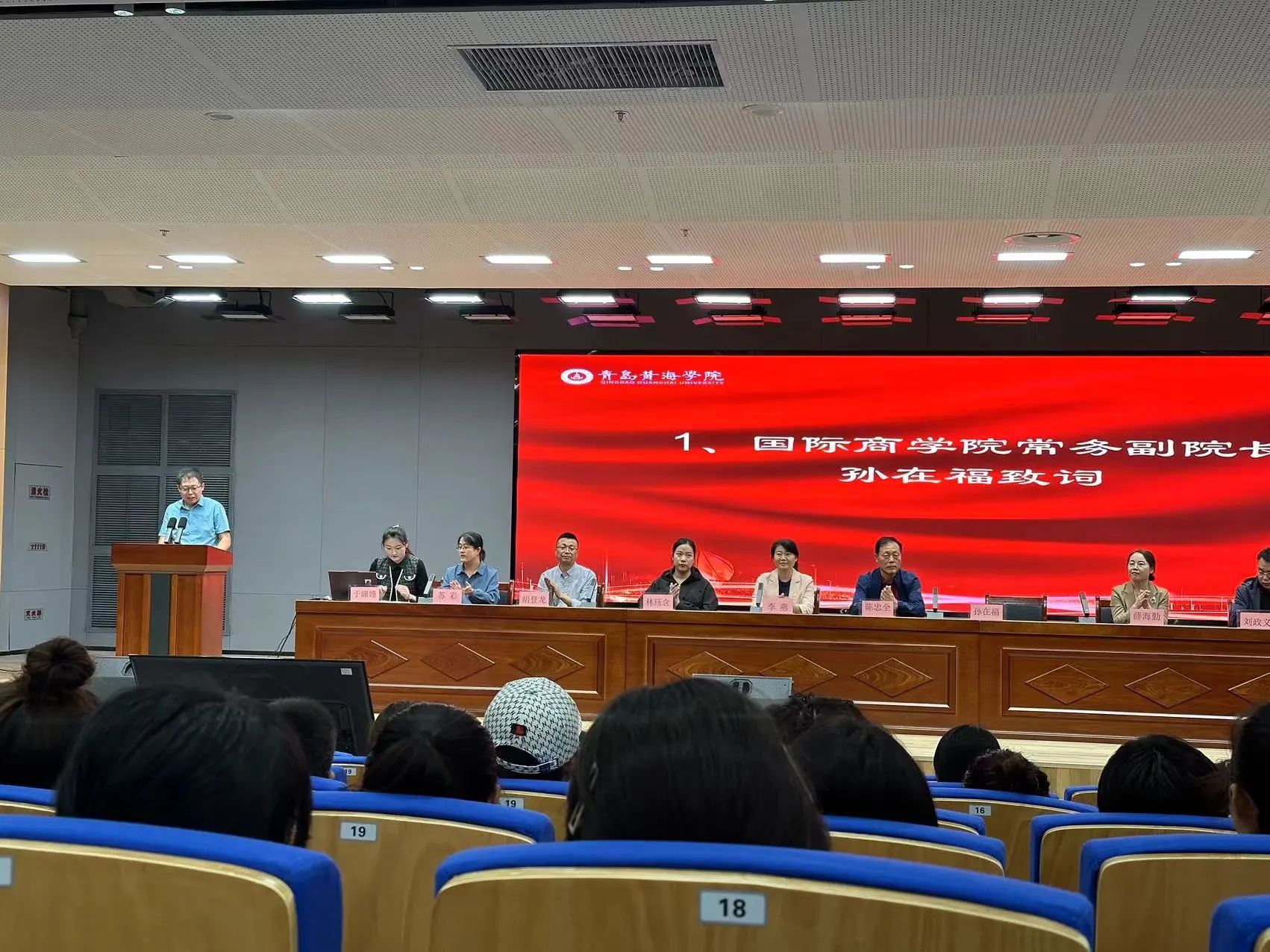 首先国际商学院和经济管理学院党总支书记孙在福院长致词,就“做新青年,开启人生新篇章新旅程,黄海人心怀大志 ”做出发言,强调指出作为新时代的青年人,要尽己所能,行善拒恶。我们青少年要将理想融入国家和民族,在可为时代大有作为,成为一个对国家和社会有用的人,从书本中提取力量,开阔自己的视野,为之后的发展做好铺垫。