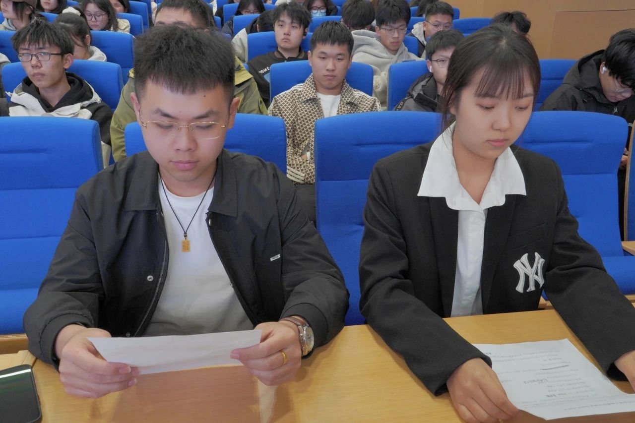 今天出席仪式的各位领导,他们分别是国际商学院学工主任陈祥德,经济与管理学院学工主任武志强,国际商学院团总支书记于珊珊,经济与管理学院团总支书记仪晓霖。“雷锋出差一公里,好事做了一火车。”一个平凡的解放军战士,也是一个伟大的榜样。小到为民,大到为国,又忙就帮,有事就做。新时代的我们应践行雷锋精神,做好人,做好事。