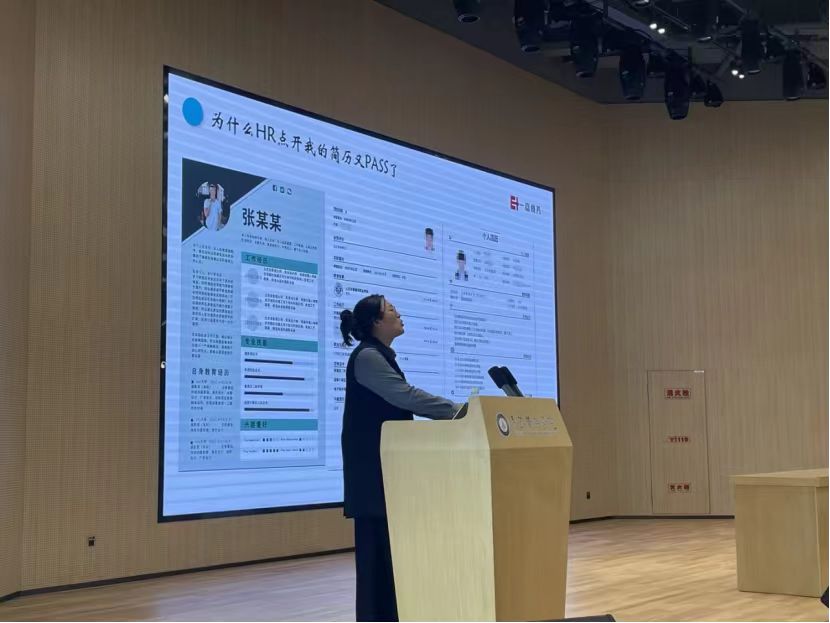 一嘉合创的专家老师凭借丰富的行业经验和专业知识,为学生们带来了一场精彩纷呈的讲座。周星老师深入浅出地讲解了简历制作和面试技巧,助力学生们在未来求职道路上更加从容自信;曲兴华老师则围绕未来职业规划展开探讨,引导学生们明确自己的职业目标和发展方向;徐仰昆老师则为学生们传授了商务礼仪的精髓,助力他们在商务场合中更加得体自如。企业老师们的分享不仅让学生们受益匪浅,也让学生对未来的职业规划有了更加清晰的认识。