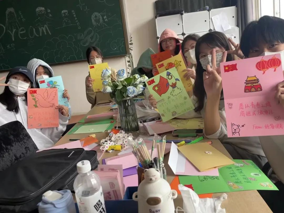 贺卡制作的每一个步骤,都是经济与管理学院团总支的心意与真诚。在国家科技不断发展、互联网迅速普及的今天,我们一字一句亲笔写下对青年团员的祝福,一笔一划亲手绘出祖国的大好河山。