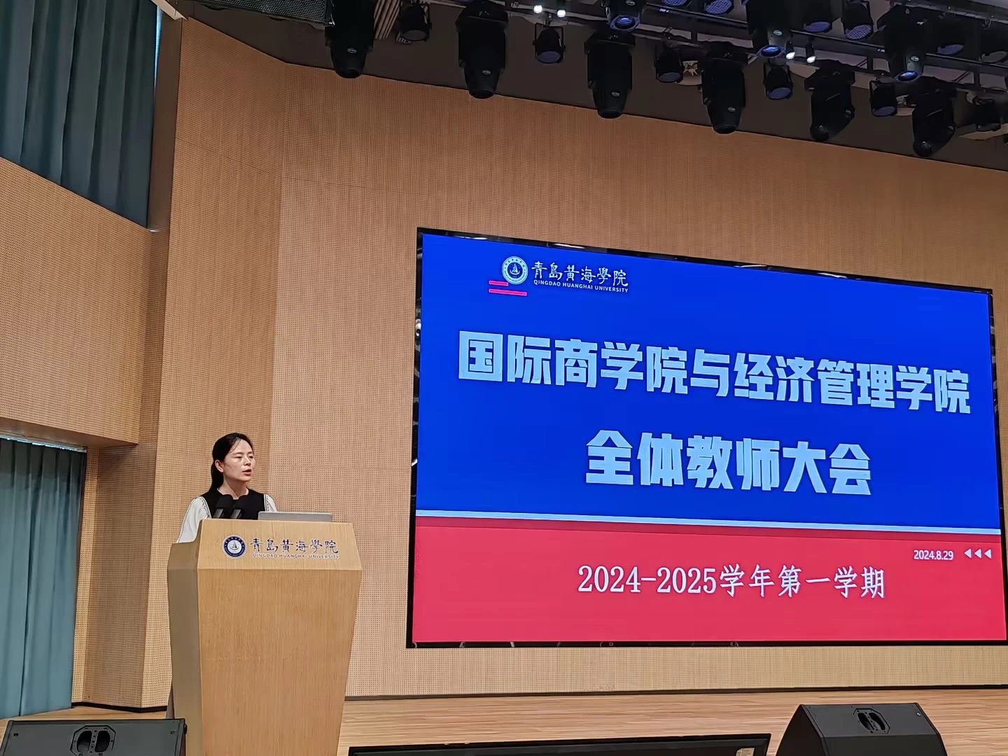 为统一思想、凝心聚力,全力以赴迎接教育部本科教育教学审核评估,进一步加强和改进教学管理工作,切实有效推进教学工作安排,保证新学期教育教学各项工作顺利开展。8月29日下午,国际商学院与经济管理学院2024-2025学年第一学期全体教师大会在知信楼306报告厅召开。会议由国际商学院常务副院长孙兆忠主持,国际商学院与经济管理学院全体院领导、教职工参加会议。