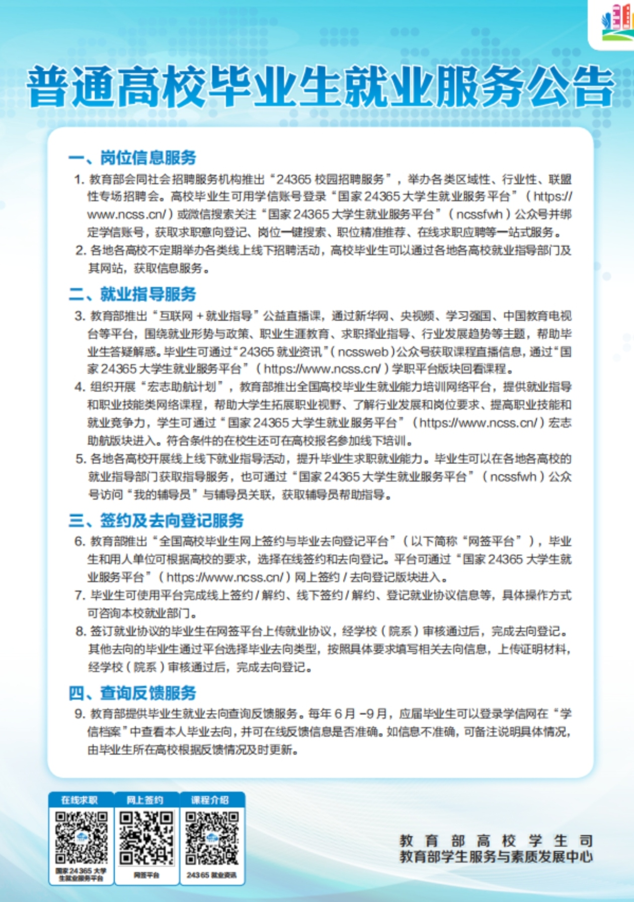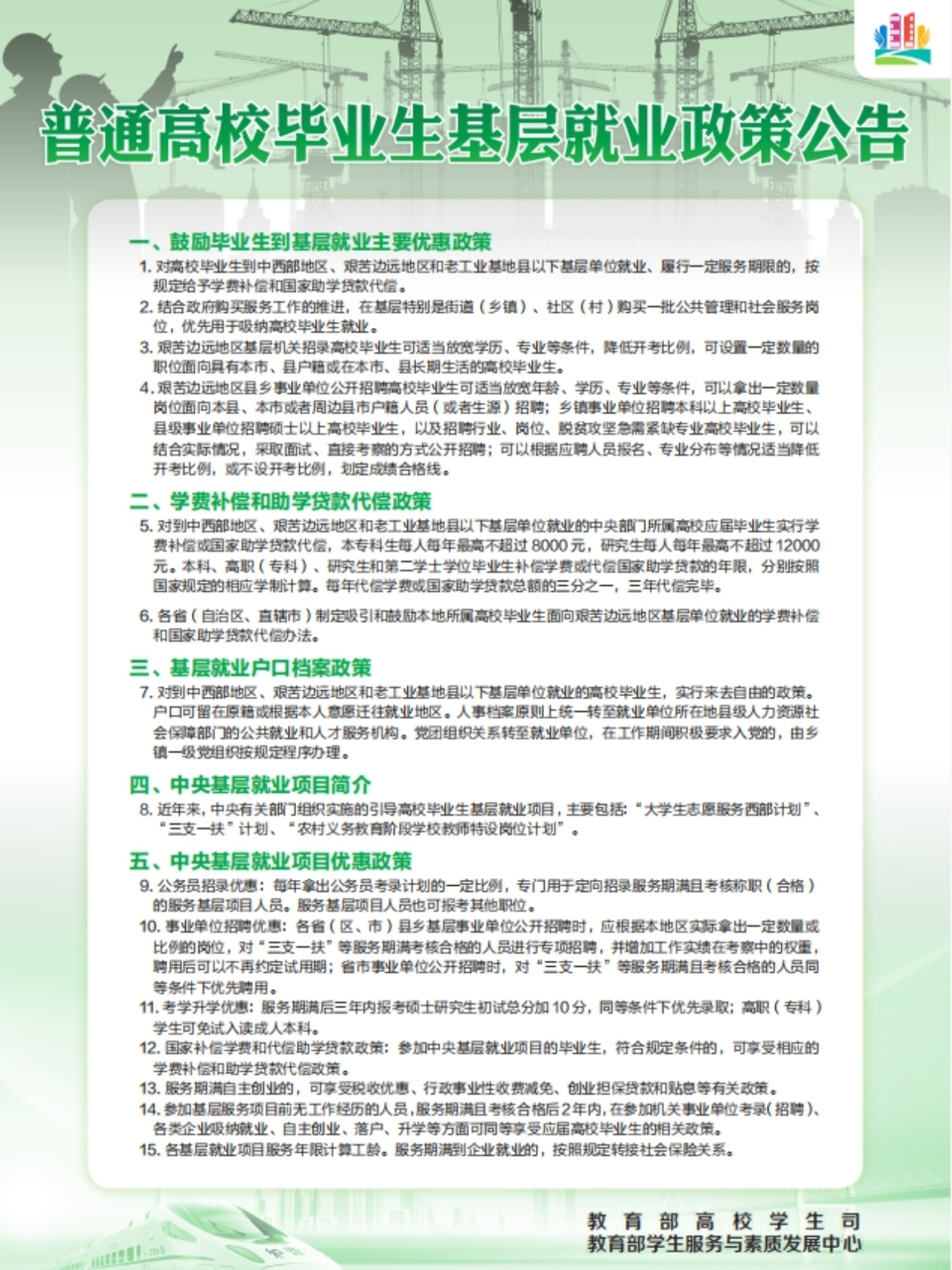 普通高校毕业生基层就业、自主创业、应征入伍政策及就业服务公告