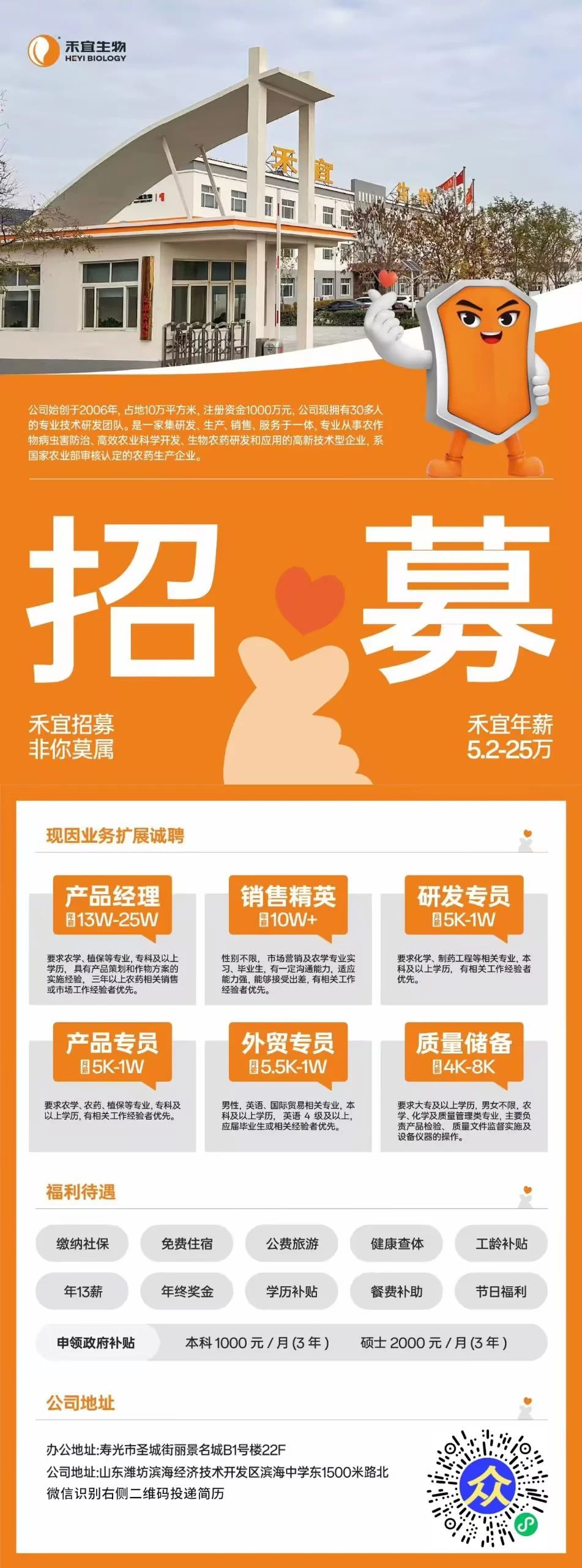 招聘信息丨山东禾宜生物科技有限公司(潍坊)