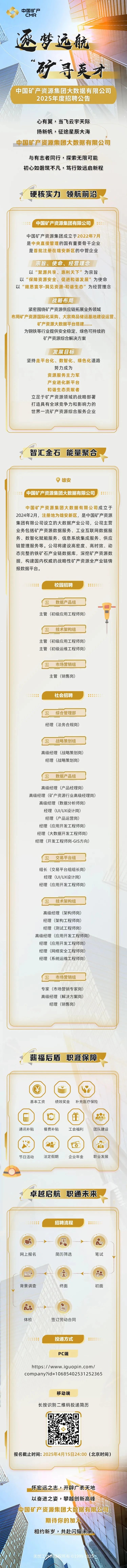 招聘信息|中国矿产资源集团大数据有限公司2025年度招聘公告