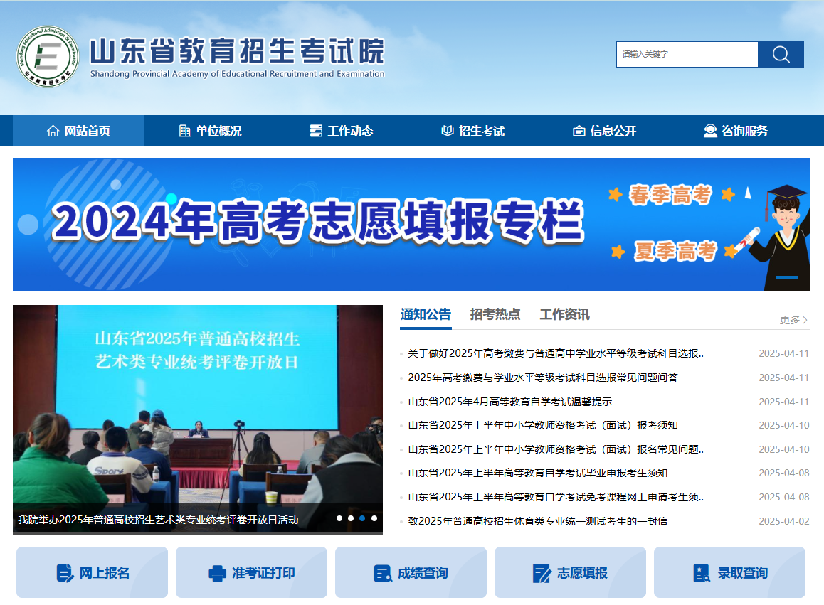 打开山东省教育招生考试院(https:www.sdzk.cn)。