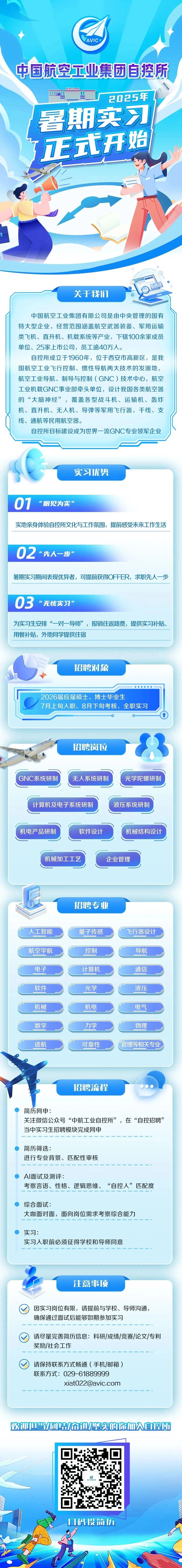 招聘信息|中国航空工业集团自控所2025 年暑期实习