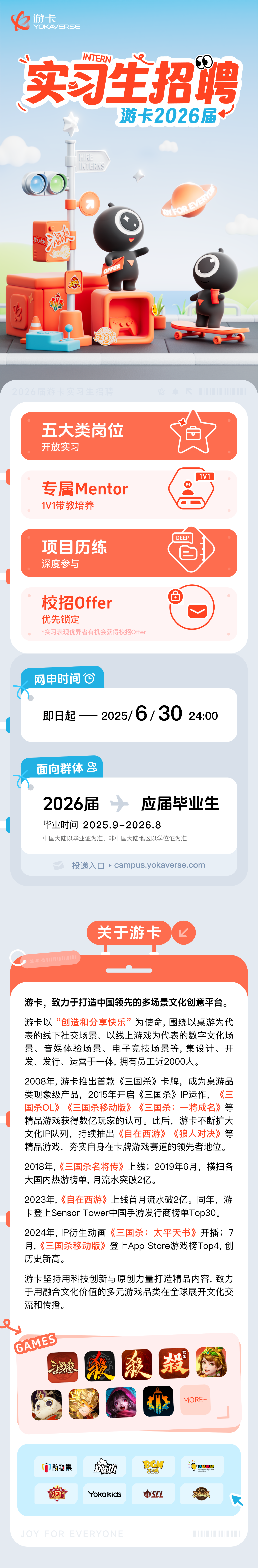 招聘信息 | 校招 | 游卡2026届实习生招聘正式启动