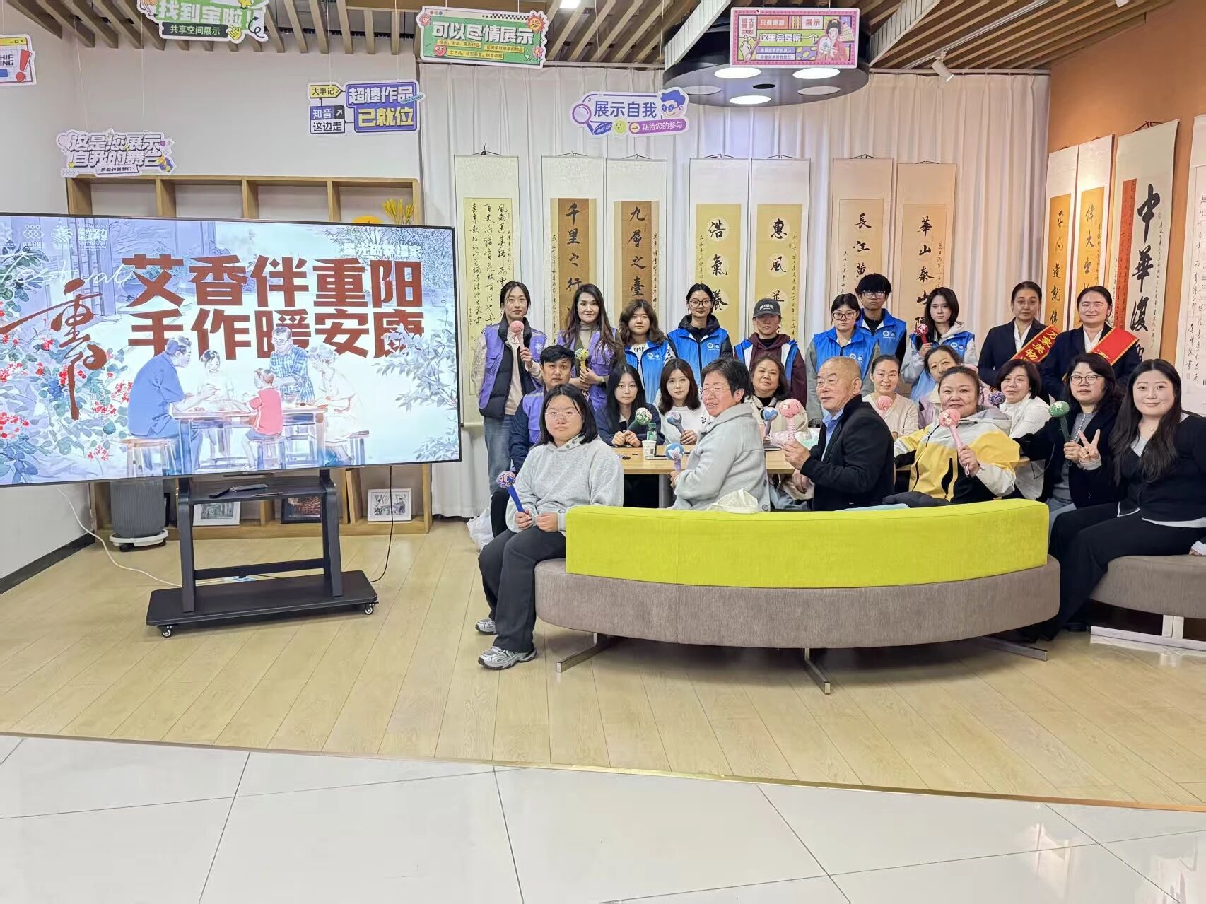 当"小黄锋"的志愿旗帜飘扬在星光岛社区,茱萸的清香弥漫在活动中心,一场以"岁岁有重阳,有你不重young"为主题的志愿服务活动,正用青春力量为传统节日织就跨越代际的"温暖传承网"。数字商务学院"小黄锋"志愿者协会以"一针一线传承文化根脉,一老一小共谱重阳新篇"为理念,通过讲解节日由来,重阳艾草锤制作构建起传统节日与青年担当的深度对话。