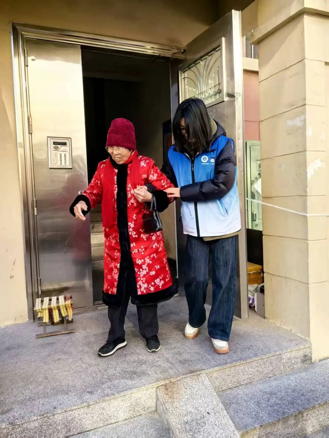 志愿者小心翼翼地搀扶着步履蹒跚的老人,在午后阳光透过层层枝叶洒下斑驳光影的社区小路上悠然漫步。老人们的脸上洋溢着久违的笑容,不时停下脚步指着路边盛放的野花轻声感叹,志愿者们则耐心倾听,偶尔分享着校园里的趣事,温暖的话语与清脆的鸟鸣交织在一起,为这条宁静的小路增添了几分生机与温情。