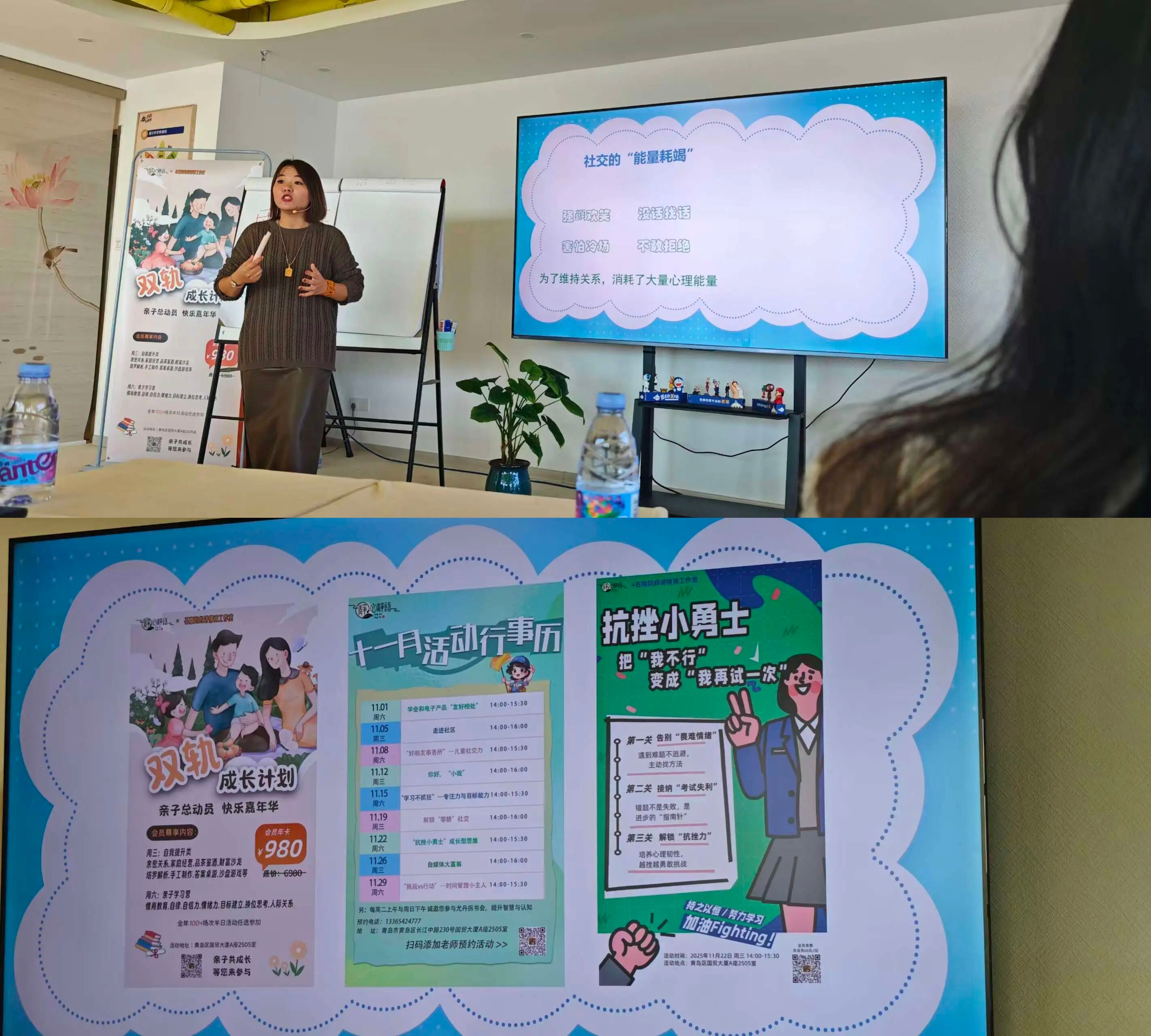 培训现场,老师细致拆解活动全流程:从社区居民接待技巧、数字心理学工具使用方法,到“社交解码包”发放、互动环节引导,每一个细节都讲解得清晰透彻。针对“如何帮居民快速理解零糖社交核心”“怎样应对现场突发疑问”等关键问题,老师结合实际案例分享实用技巧,志愿者们快速get服务要点。