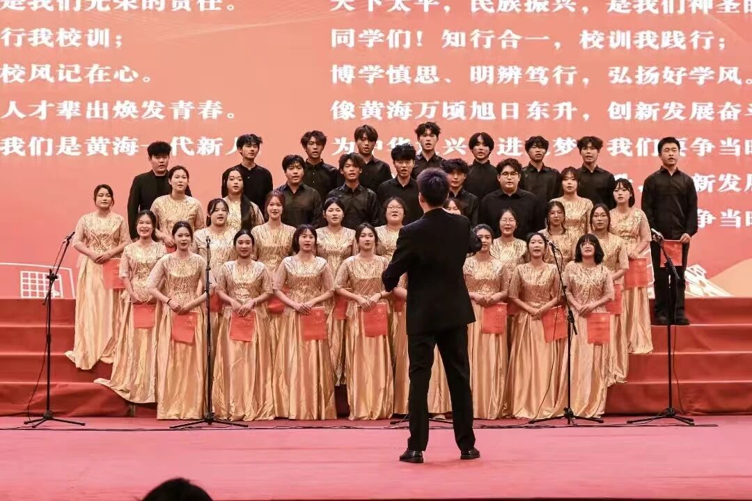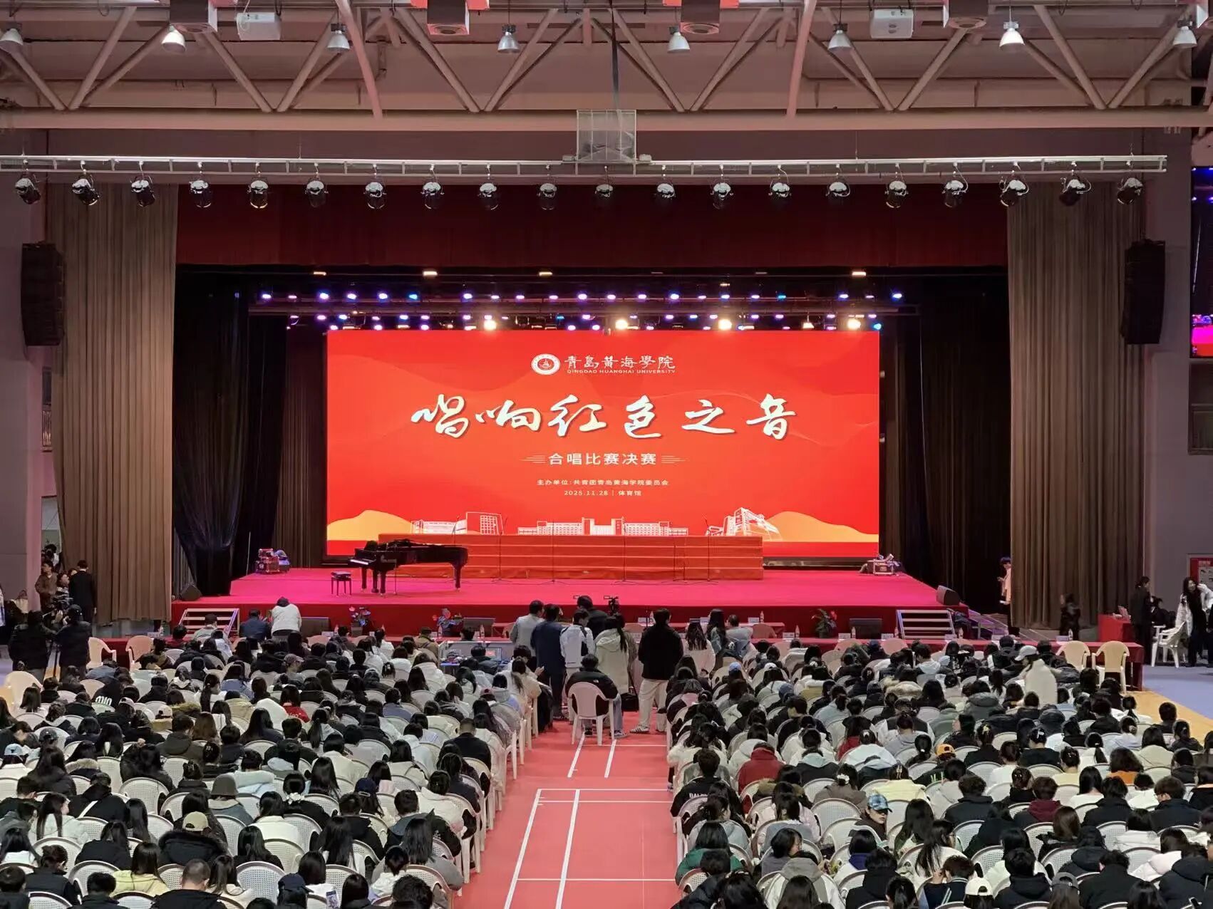 为丰富校园文化生活,弘扬时代精神,激发青春激情,展现当代学生精神风貌,青岛黄海学院于2025年11月28日晚,在体育馆举行“唱响红色之音”合唱比赛。