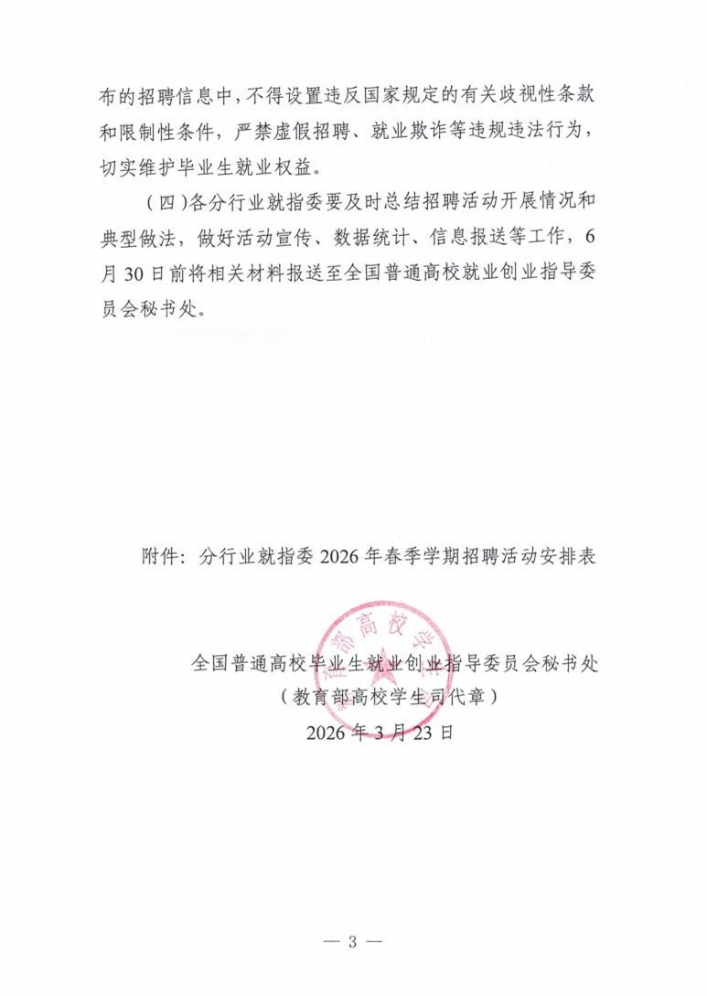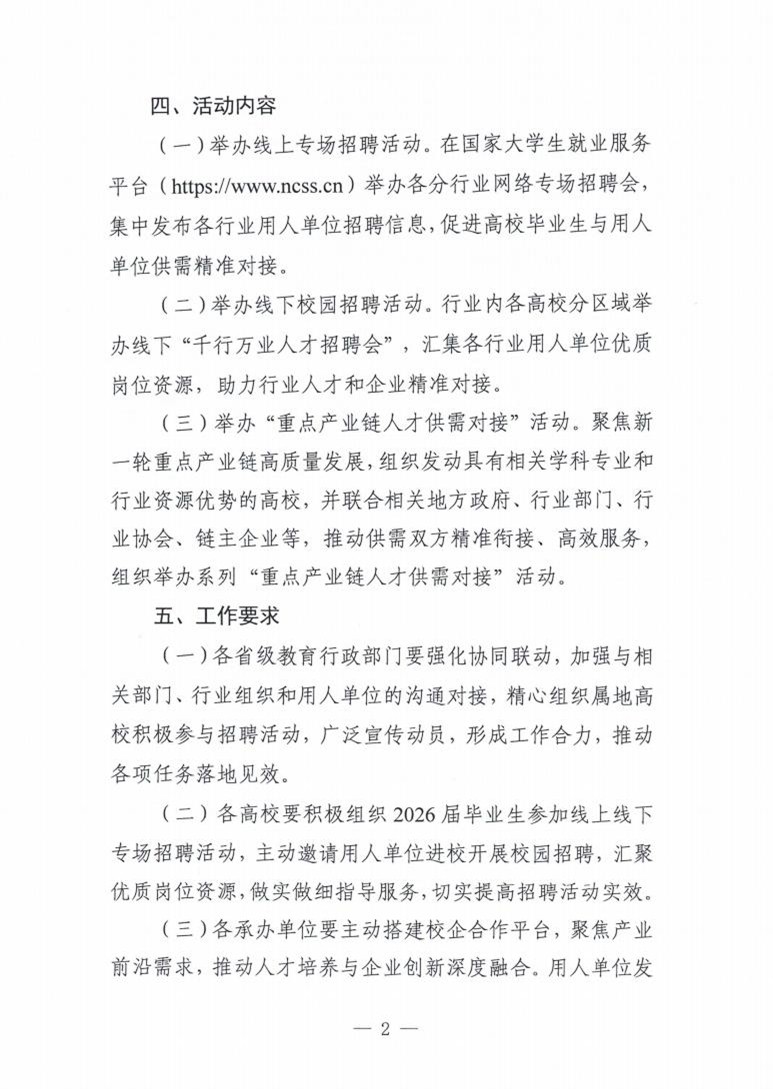 《关于面向2026届高校毕业生举办分行业春季招聘活动的通知》