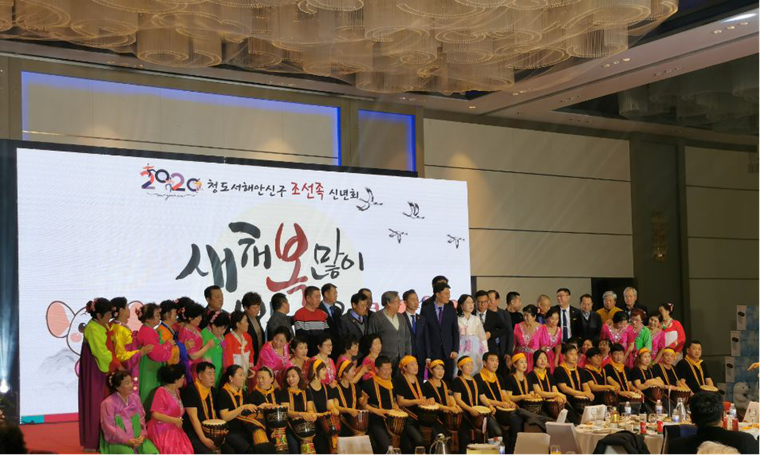 2020年青岛西海岸新区朝鲜族新年会于2020年 1月 1日 16:30在黄岛区太行山路1号黄岛泰成喜来登酒店举行,青岛朝鲜族企业协会西海岸新区支会、青岛西海岸新区朝鲜族老人协会、女性协会、高尔夫协会、羽毛球协会、足球协会、科技文化人协会、敬老联谊新年会,青岛西海岸新区朝鲜族各团体会员及家属等360多人参加了新年会。大会在雄壮的国歌声中开幕,主要嘉宾祝词,各个协会表演了丰富多彩的国内外民族舞蹈,演出结束后嘉宾与演员们合影留念。