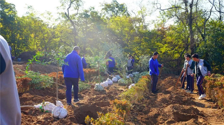 当天,“陇南班”学子们亲手种下家乡树,挖栽植穴、扶正、培土……同学们纷纷争相上阵,干劲十足。