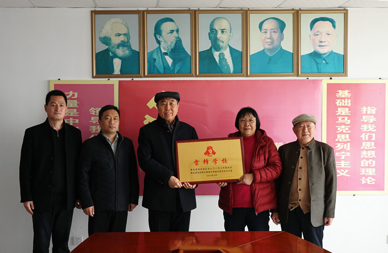3月9日上午, 青岛西海岸新区关工委来我校举行“雷锋学校”授牌仪式。新区关工委副秘书长黄彩霞、区关工委校外教育工作团团长李通效、区关工委办公室王红,我校校务委员会副主任、关工委主任宋庆泽,综合办公室副主任李镇江,武装部副部长李桂臣等参加授牌仪式。