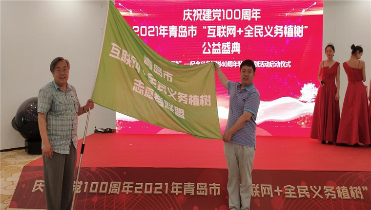 大会为互联网+全民义务植树联盟成员单位代表:青岛市民族团结进步协会、青岛园林集团有限公司、市中心血站、中国石化青岛石化公司、青岛公交集团江西路保修厂、青岛市摄影家协会、青岛市少儿读书会授予义务植树联盟单位标志旗。朝克吉勒图教授所在青岛市民族团结进步协会被授予“互联网+义务植树联盟单位”标志旗,充分展示了全市各民族同胞作为生态文明建设实践者、参与者的精神风貌,发挥先进典型的示范引领作用。