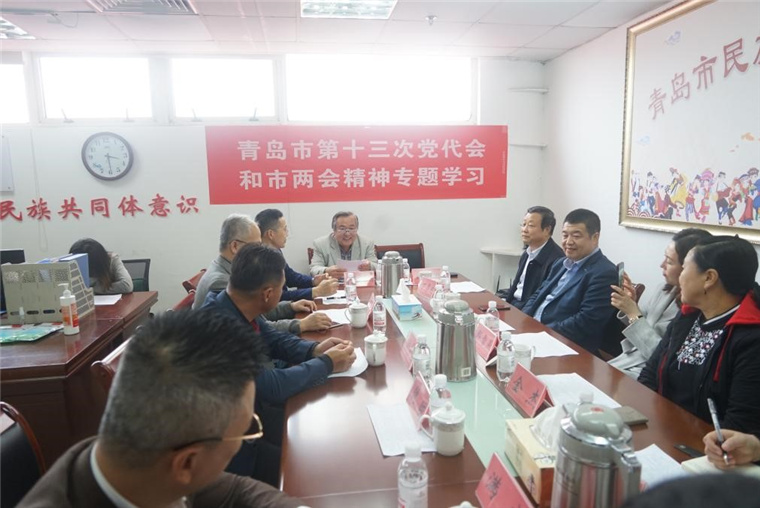 近日我校马克思主义学院院长、青岛市民族团结进步协会会长朝克吉勒图教授在青岛市民族团结进步协会传达市第十三次党代会精神,解读了市委书记陆治原在党代会上的报告,报告提出了“一二三四六十”的目标定位和思路举措,构成了青岛未来发展的完整战略体系。