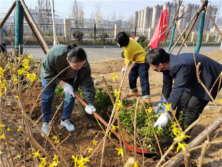 跟随着春天的脚步,又是一年植树季。传递文明“植”于心,播种绿色“树”未来。为贯彻落实习近平总书记关于生态优先、绿色发展的重要指示精神,进一步树立“绿水青山就是金山银山”的理念,努力打造人与自然和谐共生的环境育人和生态育人并重的校园。马克思主义学院与体育教学部党总支全体党员以及积极分子于3月28日上午在学校西区18号学生宿舍楼南边小广场开展“共植初心树 党员先锋行”义务植树主题党日活动。