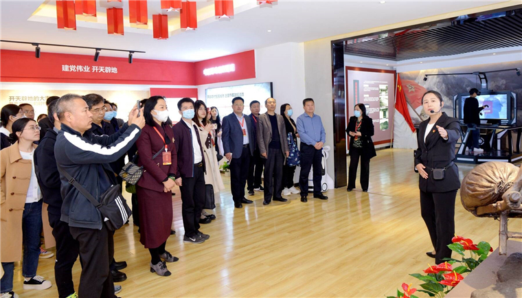 下午的实践研修活动中,与会老师们走进临沂职业学院培根铸魂体验馆、党建思政虚拟仿真中心、非遗传承教育馆和华东野战军总部旧址暨新四军军部旧址纪念馆,体验VR设备,观看红色情景剧,感受临沂职业学院在深耕“大思政课”建设、提升育人实效方面的生动实践。