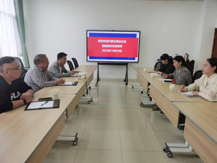 2025年10月30日在我校校长助理、人力资源部部长孙在福的大力支持下,由马克思主义学院名誉院长、青岛民族团结进步协会名誉会长、山东省内蒙古商会顾问朝克吉勒图教授牵线并出席我校数字商务学院与青岛内蒙古商会举行的洽谈会。青岛内蒙古商会、山东省赤峰商会副会长马跃,秘书长李东;学校合作发展处卢锐、数字商务学院院长助理李燕、电子商务教研室主任李晨一同出席了会议。