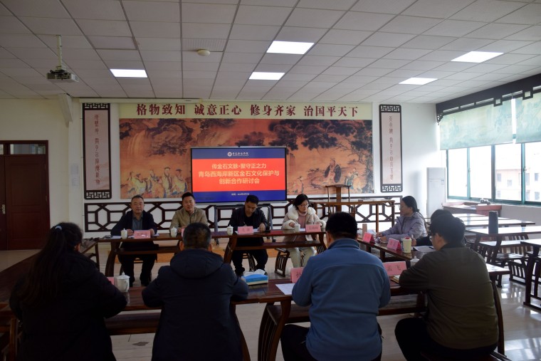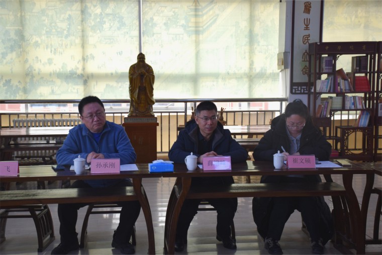 日前,青岛西海岸新区档案馆馆长薛增峰一行来访青岛黄海学院,以“传金石文脉·聚守正之力”为主题开展新区历史遗存保护合作调研。活动首站于国学院孔子学堂举行座谈,双方围绕档案史料活化传承和地方文化研究展开深度对话。国学院副院长张维霖主持座谈会。