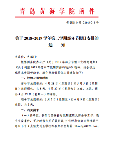 关于2018—2019学年第二学期部分节假日安排的通知