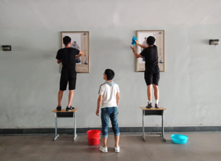 一周前,2017级国学研修班的同学们便在班会中决定抽出周末时间擦拭隧道中的七十二贤像。此刻,他们自发约定、汇聚于此,搬来桌椅,认真细致地为七十二贤像抹去灰尘,明亮镜像。他们拂去的何止岁月的灰尘?比镜像更明亮的,是先贤的光辉和大家心中的良知。